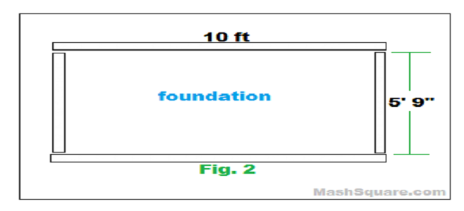 Referring to Fig. 2 now, since the studs are 1.5-inch wide, the 10-inch studs extending along the longer sides supply 3-inches to the width, meaning the studs along the shorter sides should be 5’9″ long and not 6-ft. After making the rectangular frame, it is time to place it on the concrete blocks and using the level to insure the frame are balanced from all sides. No need to rush into building the shed without making sure the foundation is well balanced.